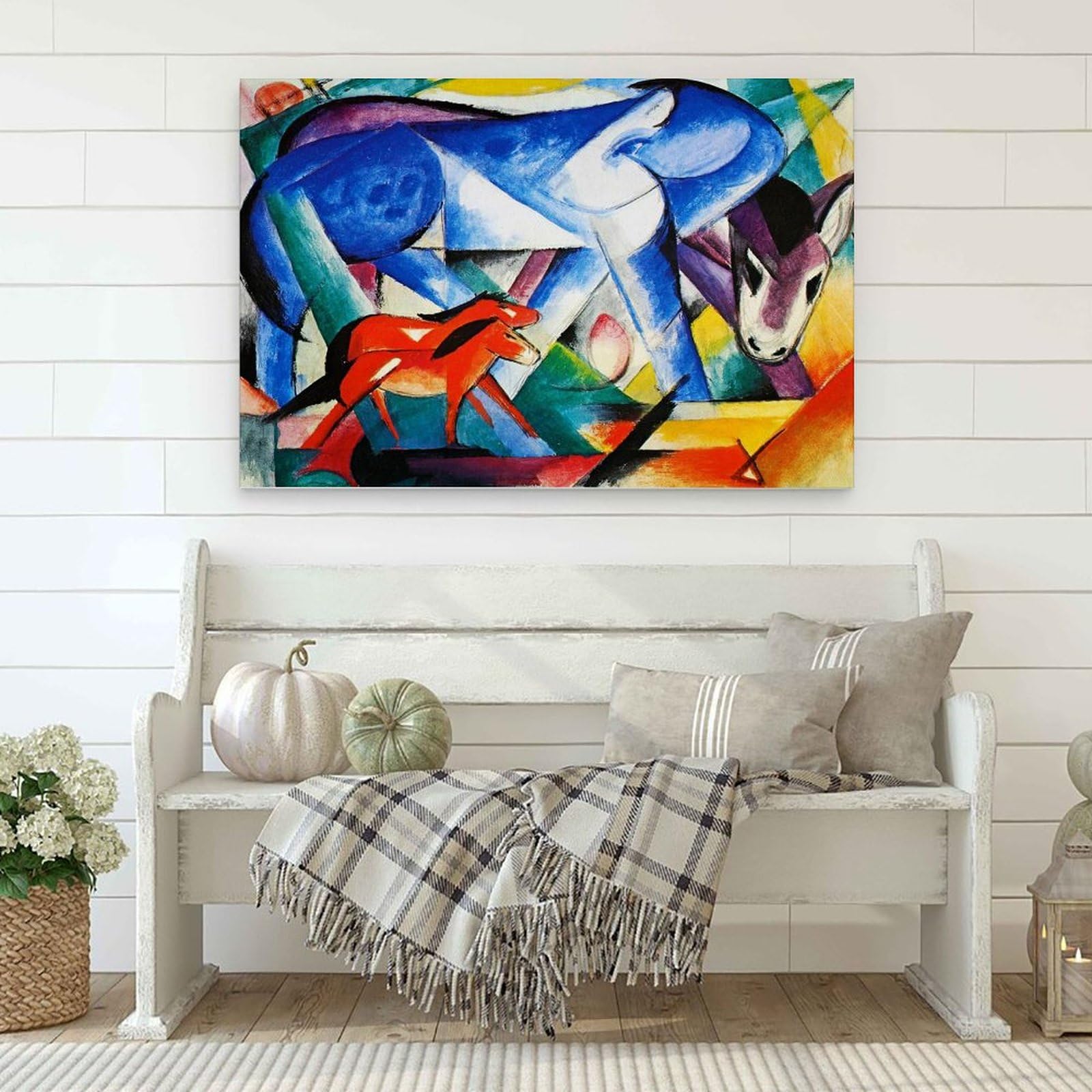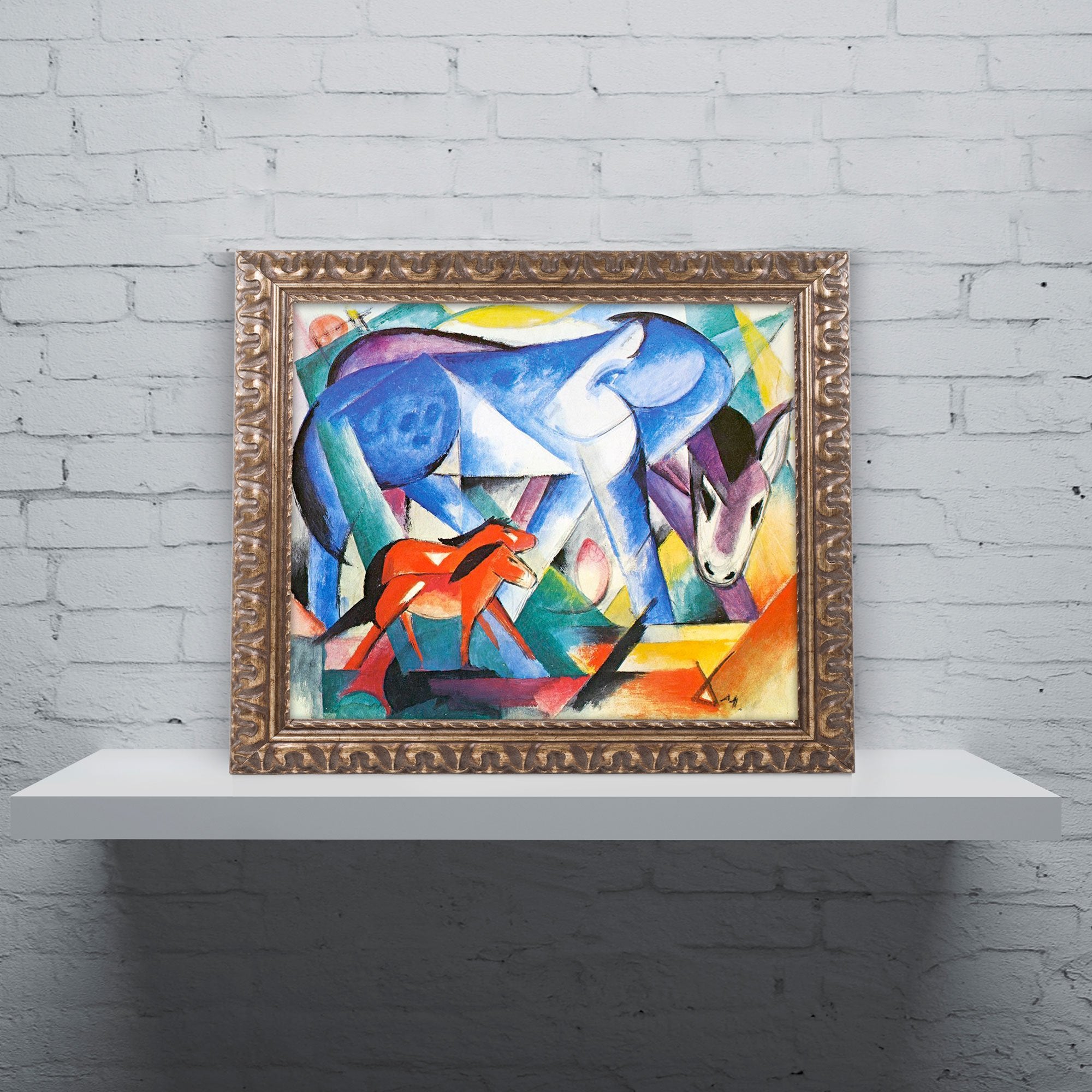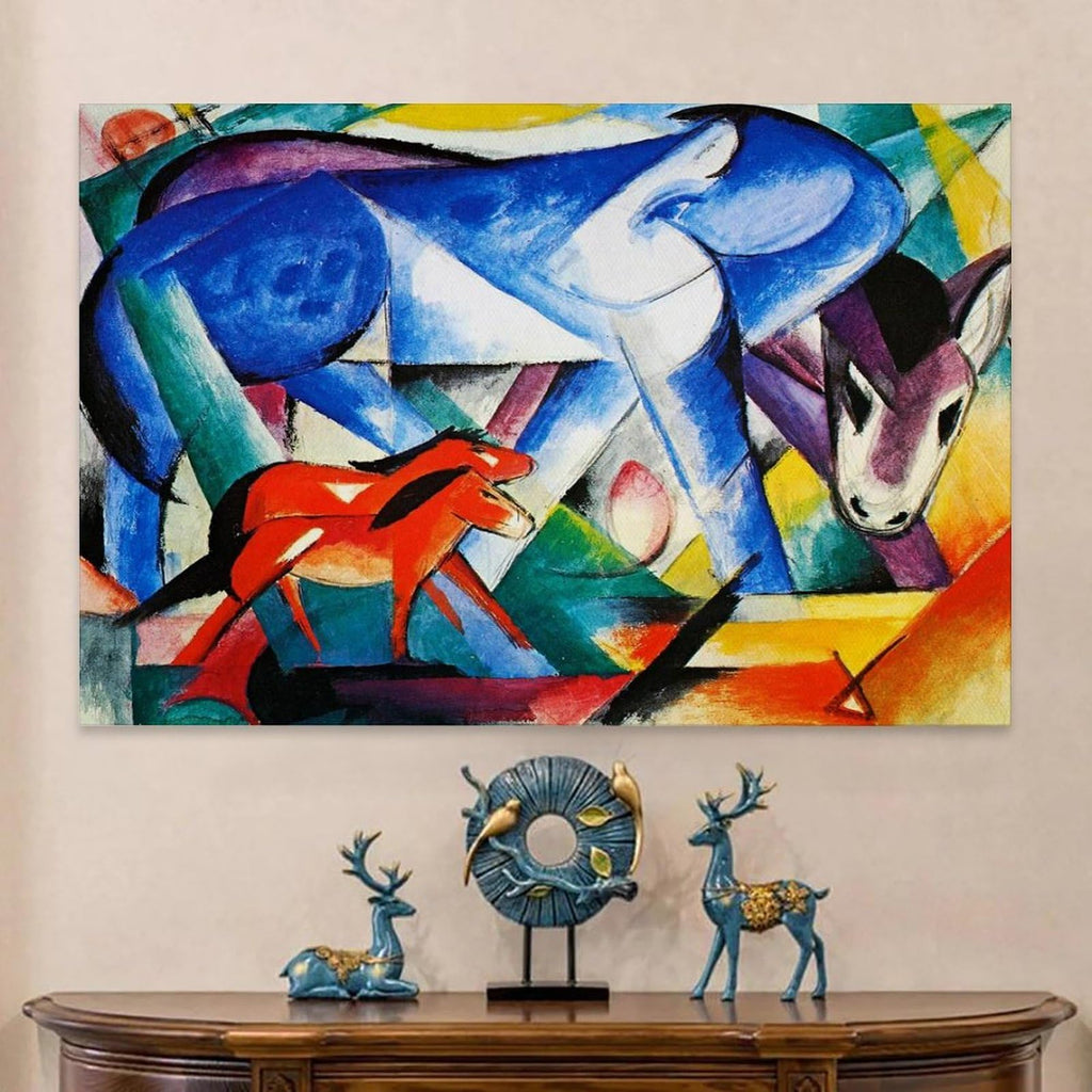 Ein faszinierender und oft tragischer Aspekt dieser Phase von Marc ist seine Vorahnung einer Welt, die kurz davor stand, sich für immer zu verändern. Nur ein Jahr vor dem Ausbruch des Ersten Weltkriegs – einem Konflikt, der ihm das Leben an der Front von Verdun kosten sollte – gemalt, destilliert dieses Werk eine Dringlichkeit, die Unschuld zu bewahren. Marcs Tiere sind heilige Wesen, frei von der "Sünde", die er der Menschheit zuschrieb. Wenn wir dieses Bild betrachten, sehen wir nicht nur ein Meisterwerk der Avantgarde, sondern auch einen Zufluchtsort der Reinheit. Die Technik, mit ihren kraftvollen, aber präzisen Pinselstrichen, offenbart einen Künstler an der Spitze seiner technischen und philosophischen Fähigkeiten, der in der Lage ist, eine tierische Szene in ein visuelles Gebet für Frieden und universelle Einheit zu verwandeln.